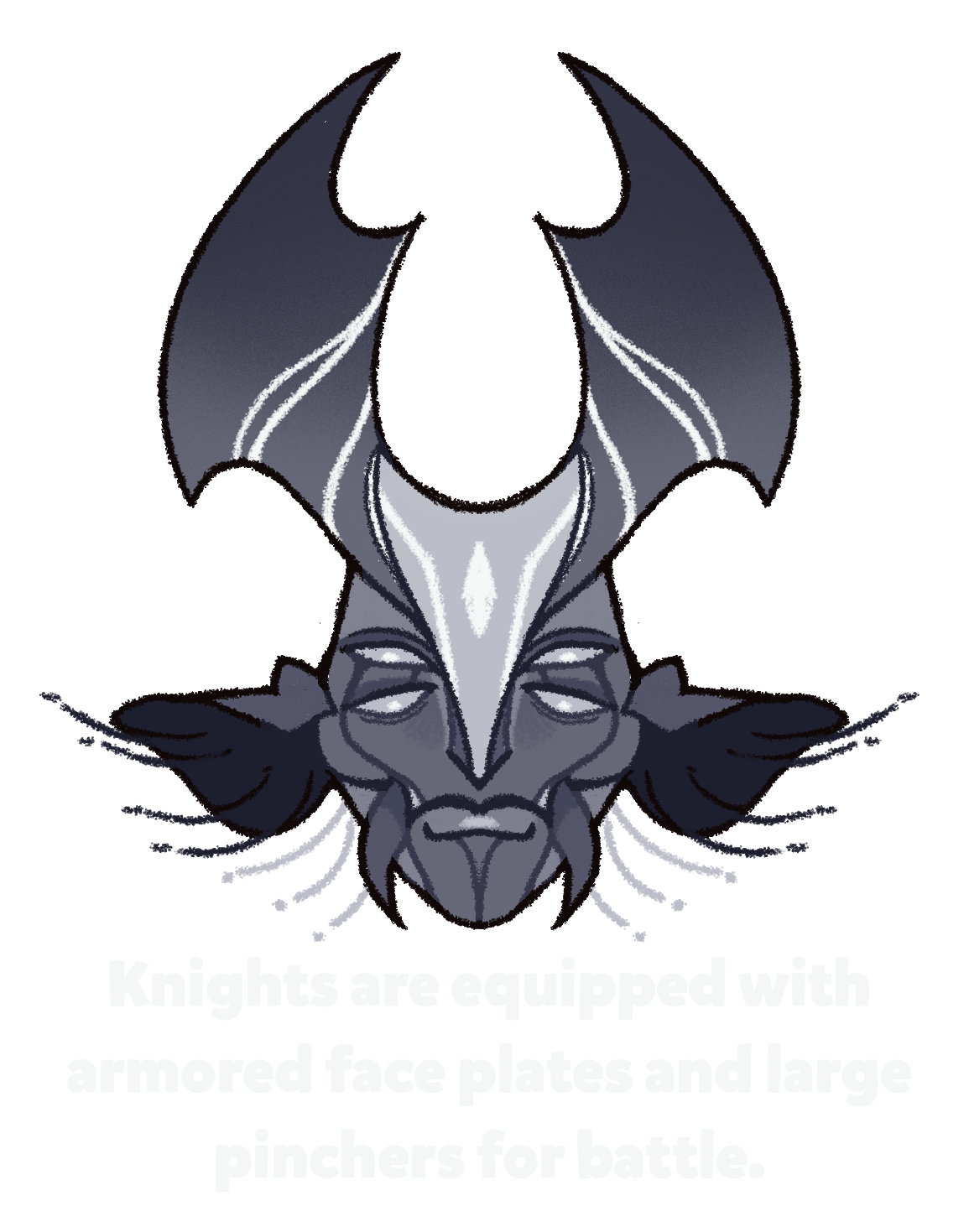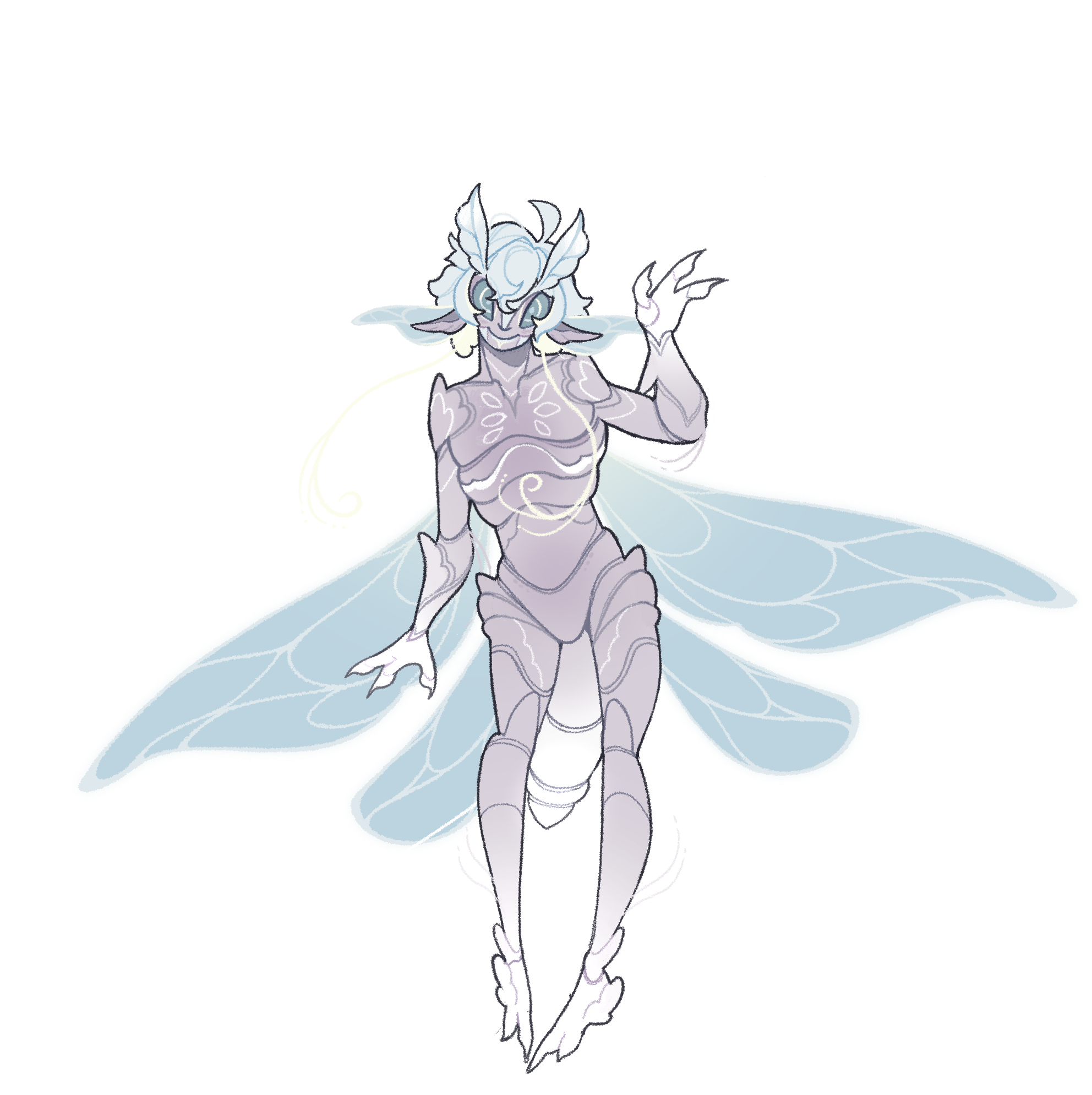 There are two distinct types of Fae native to Beast Yeast, the most common type is the Firefae and the Knight species. Firefae typically resemble both moths and fireflies, and manage typical tasks such as inventory management and record keeping. The Knights however are specifically designed and hatched to protect the area surrounding the Great Tree. From birth they are covered in a thick protective armor that allows them to withstand heavy attack. They are also equipped with a large crest that is both decorative and used to fight any invaders.
