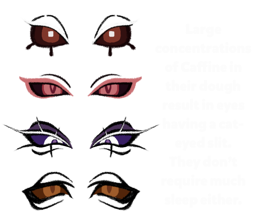They are baked with so much caffeine that their pupils are constrained into a cat-eyed slit that dilates depending on lighting and emotions.