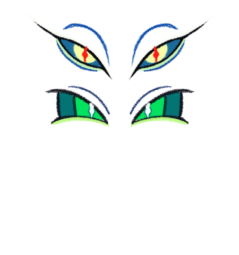 Drink Mixes take on both parent’s flavor attributes. Their eyes have both colored scleras and pupils, though in rarer cases they can have the fully colored eyes as it is a recessive trait. Their hair is only partially liquid and retains form much easier. Generally have smaller ears and the colored gradient present on the extremities doesn’t pass the fingertips or knees. They also lack the Soulstone chest marking but have a less intricate version of the leg markings.