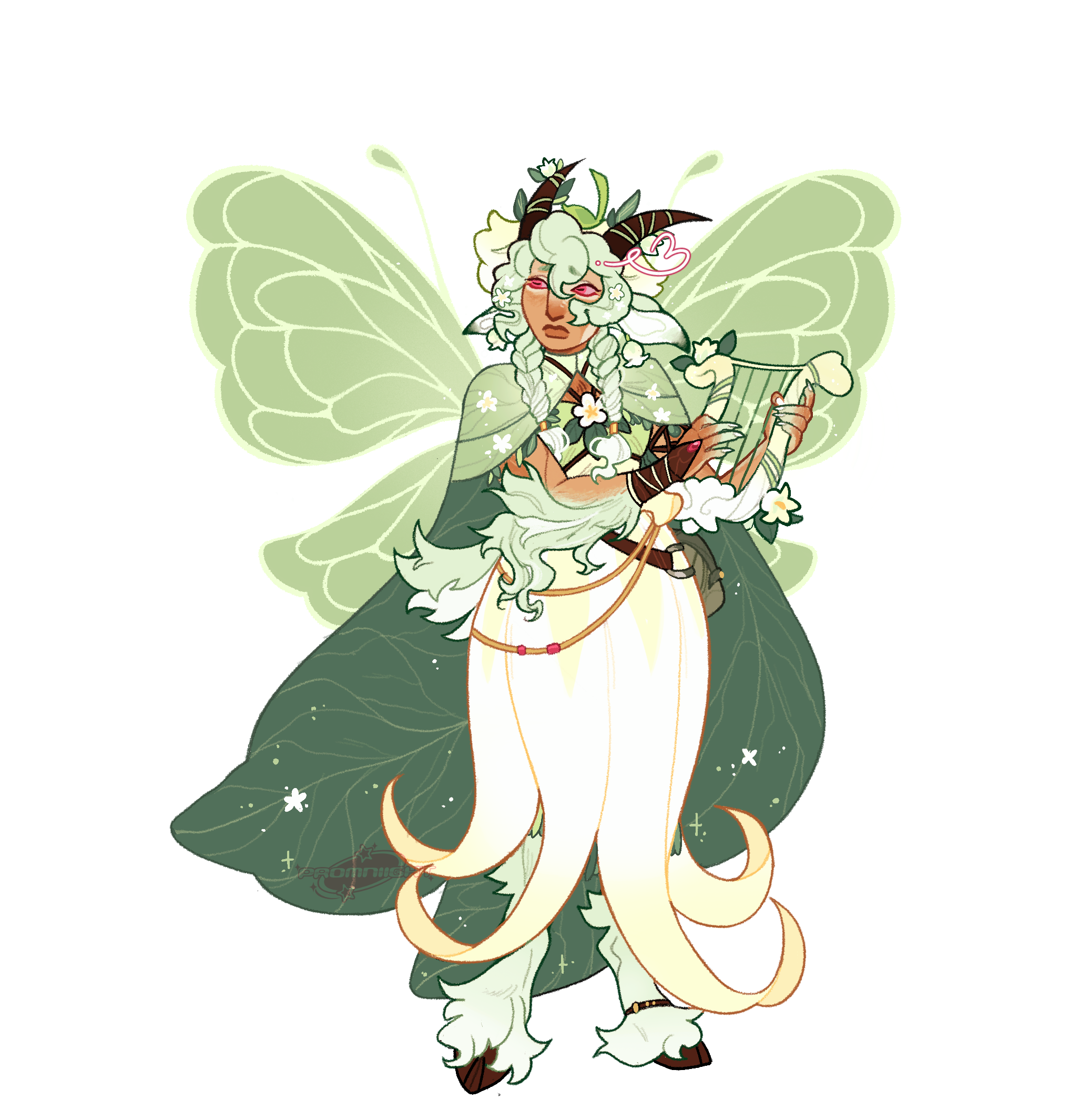 A subspecies of Flower Fae that closely resemble Satyrs. Despite having the lower half of a goat and more “goat-like” traits, they grow flowers and vines on their bodies like regular fae though to a lesser degree. The two species often live and work closely together, developing a unique relationship.*art here is a placeholder! :]